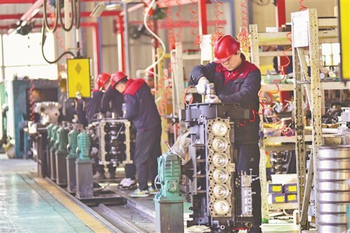 1月2日,工人在山東省青州市何官鎮(zhèn)一家發(fā)動(dòng)機(jī)制造企業(yè)的車間內(nèi)工作。