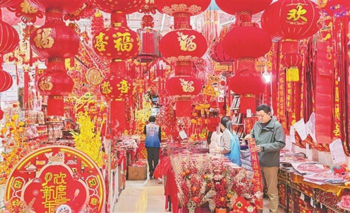 2025年1月1日,市民在深圳市羅湖區(qū)筍崗街道一家商城挑選新年飾品。