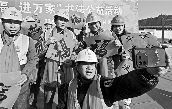 2024年12月31日,安徽省淮北市舉辦2025年“送萬(wàn)福、進(jìn)萬(wàn)家”書(shū)法公益活動(dòng)啟動(dòng)儀式,組織知名書(shū)法家走進(jìn)淮宿蚌城際鐵路1標(biāo)項(xiàng)目部,為高速鐵路建設(shè)職工寫春聯(lián)送祝福,把溫暖和關(guān)愛(ài)送到一線職工心坎上。