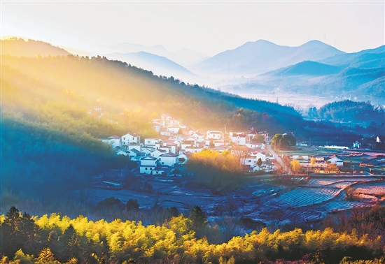 圖為近日在安徽省蕪湖市繁昌區(qū)峨山鎮(zhèn)城東村拍攝的鄉(xiāng)村晨景。