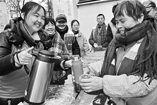近日,江蘇省鎮(zhèn)江市三茅宮第二社區(qū),環(huán)衛(wèi)工人開心地拿到江蘇大學志愿者贈送的圍巾、保溫杯和護手霜。當日,志愿者來到該社區(qū)開展“新年愛心禮 溫暖環(huán)衛(wèi)工”主題黨日活動,向環(huán)衛(wèi)工人贈送保暖防護用品,為“城市美容師”送上寒冬里的暖心關懷。本報通訊員 石玉成 攝