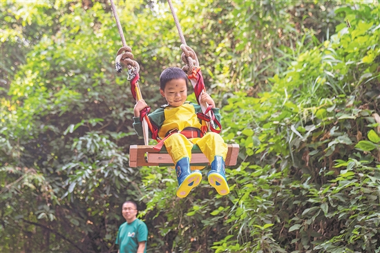 圖為游客在基諾山鄉(xiāng)徒步路線沿途體驗蕩秋千。新華社發(fā)(彭奕凱 攝)