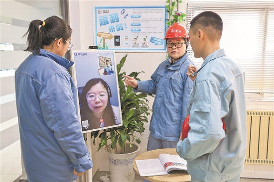 中國石化揚子石化把醫(yī)療服務送到一線職工身邊,首臺“健康咨詢智慧屏”在該公司熱電廠試用,該智慧屏為職工提供主治醫(yī)師24小時視頻在線咨詢服務,實現(xiàn)在線解答健康咨詢、體檢報告解讀、常見病咨詢、用藥指導等功能,呵護職工身心健康。圖為2024年12月 27日班組員工對冬季皮膚過敏進行線上咨詢。張琳 文 李樹鵬 攝