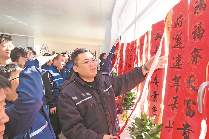 當(dāng)日,遷安市文旅局組織的數(shù)十名書法家、非遺傳承人齊聚唐首馬鐵礦職工活動(dòng)中心,交流獻(xiàn)藝,揮毫潑墨,為職工寫春聯(lián)、送剪紙,呈上一份“文化年貨”大禮包。