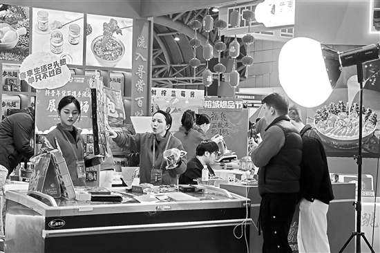 當(dāng)日,福州都市圈年貨大會在海峽國際會展中心舉行,吸引許多市民前來購買年貨。