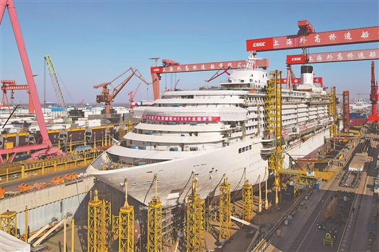 第二艘國產(chǎn)大型郵輪“愛達(dá)·花城號(hào)”全船貫通