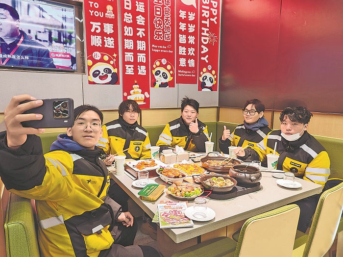 在新春佳節(jié)即將來臨之際,北京市朝陽區(qū)來廣營清苑路第五社區(qū)聯(lián)合工會舉辦了“新春團圓宴,共享年味情”主題活動。活動邀請了長期服務(wù)在華貿(mào)城小區(qū)的外賣配送員,共同品嘗由轄區(qū)餐飲單位精心準備的團圓飯。本報記者 賴志凱 攝