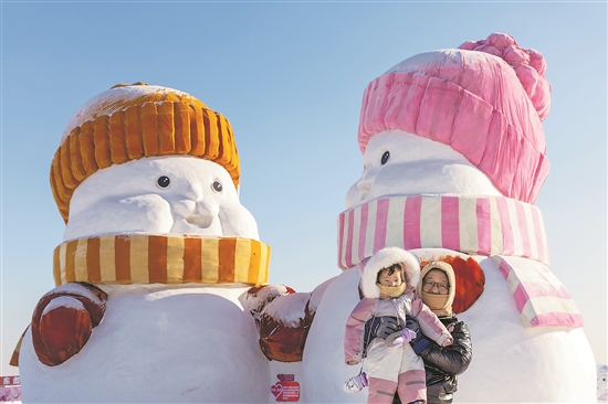 1月15日,游客在“爾濱之心歡樂(lè)島”內(nèi)拍照。