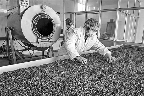 1月14日,雙泉莊村村民在加工丹參。