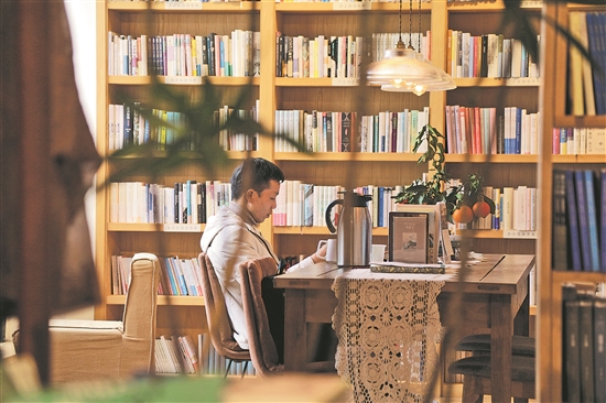 坐在鄉(xiāng)村閱讀室窗前,讀詩、品咖啡、望雪山……這樣恬淡的日子,在四川蒲江縣的明月村已是尋常。圖為近日游客在明月村“遠(yuǎn)家”文化空間讀書品茶。 新華社記者 楊進 攝