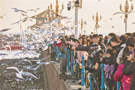 冬日,大量海鷗在山東青島棧橋景區(qū)聚集,市民和游客紛至沓來,與這些美麗的精靈互動,人鷗和諧相處的畫面展現(xiàn)出這座海濱城市的冬日浪漫。本報記者 王偉偉 攝