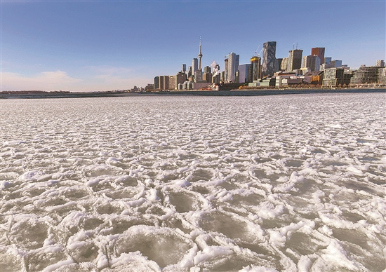 加拿大環(huán)境部日前發(fā)布了多倫多極寒天氣預(yù)警。圖為近日在加拿大多倫多拍攝的結(jié)冰的安大略湖。