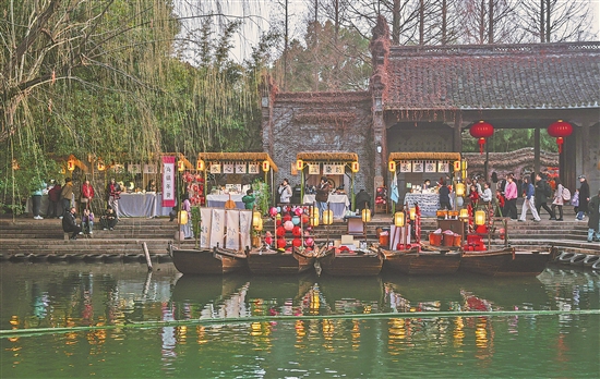 從早晨的“早茶客迎春”,到熱鬧的“年貨船送?!迸c巡游活動,游客不僅可以感受到傳統(tǒng)江南水鄉(xiāng)的淳樸年味,還能參與如“除夕祭年神”“水上年貨集”“水上年食集”及“新春長街宴”等極具儀式感的活動,讓游客在水鄉(xiāng)風(fēng)情中品嘗暖鍋等特色年味美食。新華社記者 徐昱 攝