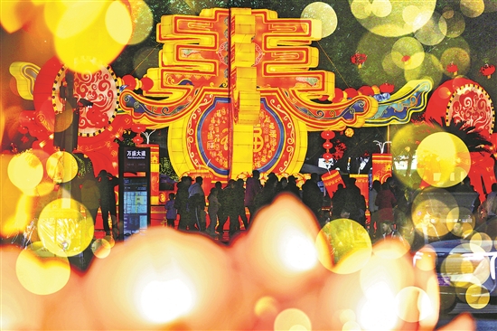 為營(yíng)造喜慶祥和的節(jié)日氛圍,遵循簡(jiǎn)約環(huán)保節(jié)能、適度適量適宜原則,該地將春節(jié)風(fēng)俗特色和地域文化特色串聯(lián)起來(lái),以“喜蛇年共慶新春 繼龍歲大展宏圖”為主題,設(shè)置年味十足的紅燈籠、中國(guó)結(jié)、造型燈飾等,用流光溢彩營(yíng)造喜慶熱鬧的春節(jié)氣氛,為廣大市民和來(lái)區(qū)游客獻(xiàn)上一場(chǎng)視覺(jué)上的饕餮盛宴。王瀘州 攝/視覺(jué)中國(guó)