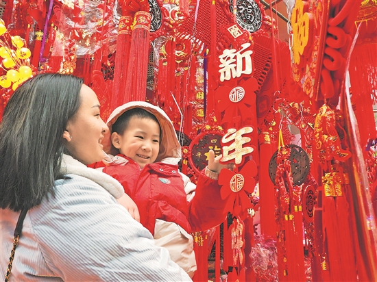 1月25日,人們在四川達(dá)州渠縣選購春節(jié)飾品。