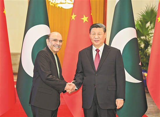 扎爾達(dá)里表示,巴基斯坦和中國是親密鄰邦,更是全天候的好朋友、好伙伴。巴中友誼歷經(jīng)風(fēng)雨,兩國人民的心始終緊緊相連。無論形勢如何變化,巴方都將毫不動搖同中方站在一起。巴方感謝中方為巴經(jīng)濟(jì)社會發(fā)展提供無私幫助,愿學(xué)習(xí)中國成功經(jīng)驗(yàn),推動中巴經(jīng)濟(jì)走廊和各領(lǐng)域合作高質(zhì)量發(fā)展,助力巴基斯坦實(shí)現(xiàn)工業(yè)化和現(xiàn)代化。在習(xí)近平主席英明指引下,中國在國際事務(wù)中發(fā)揮越來越大的引領(lǐng)作用,日益成為維護(hù)世界和平、穩(wěn)定、繁榮的重要力量。巴方愿同中方密切配合,堅(jiān)持多邊主義,維護(hù)自由貿(mào)易,促進(jìn)兩國和廣大發(fā)展中國家的共同利益。