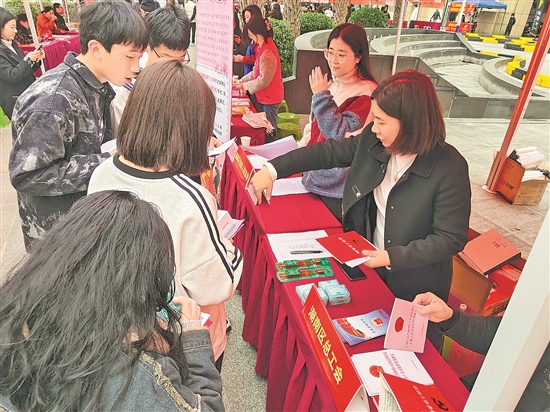 2月6日,廣東省汕頭市潮南區(qū)總工會聯(lián)合區(qū)人社局等單位在峽山合勝廣場舉辦2025年助力“百千萬工程”現(xiàn)場招聘會。招聘會以直播形式讓求職者足不出戶即可獲取招聘崗位信息。本報通訊員 張偉 攝