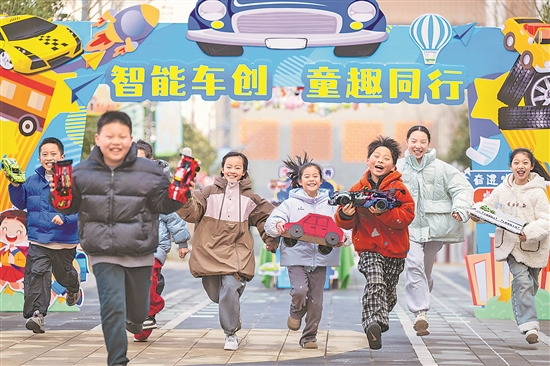 2月13日,在浙江省長興縣實驗小學(xué)(龍山校區(qū)),學(xué)生參加“智能車創(chuàng) 童趣同行”開學(xué)季活動。當(dāng)日,全國部分地區(qū)的中小學(xué)、幼兒園迎來開學(xué)第一天,學(xué)生們在形式多樣的開學(xué)第一課中開啟新學(xué)期。新華社發(fā)(譚云俸 攝)