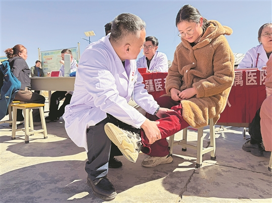 4月1日,在新疆維吾爾自治區(qū)烏恰縣吉根鄉(xiāng)小學(xué),自治區(qū)教育工會聯(lián)合新疆醫(yī)科大學(xué)第六附屬醫(yī)院心血管、骨科、呼吸科等科室的10名專家,為教職工開展“送醫(yī)送藥講座”等義診活動。當(dāng)天,自治區(qū)教育工會與吉根鄉(xiāng)小學(xué)、托云鄉(xiāng)小學(xué)教職工一起開展調(diào)研座談會,聆聽教職工心聲。本報記者 馬安妮 攝