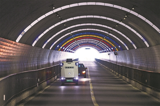 4月9日,智能無人物流車在浙江省湖州市德清縣莫干山鎮(zhèn)的勞嶺隧道內(nèi)行駛。