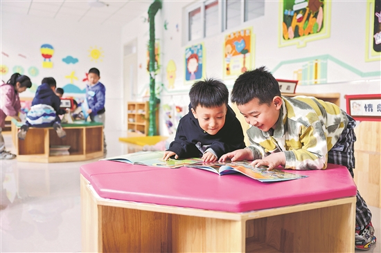 圖為近日在河北省唐山市豐南區(qū)群立幼兒園,小朋友在輕松愉悅的氛圍里閱讀繪本。新華社發(fā)(李秀清 攝)