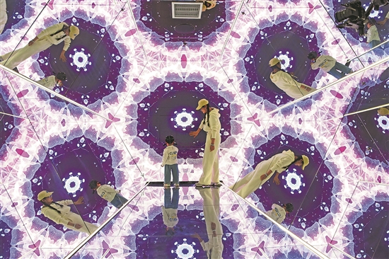 近日,在安徽省壽縣二十四節(jié)氣館,游客通過(guò)聲光電現(xiàn)代科技技術(shù)感受節(jié)氣文化。