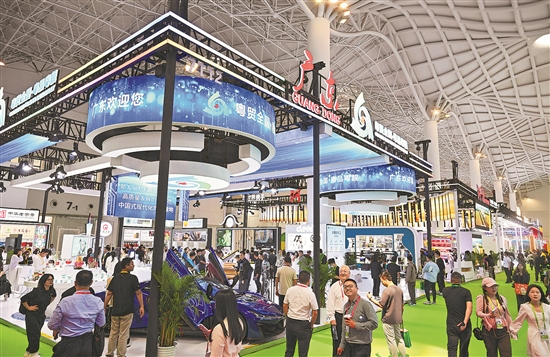 這是第五屆中國(guó)國(guó)際消費(fèi)品博覽會(huì)國(guó)貨特色潮品展區(qū)(4月13日攝)。