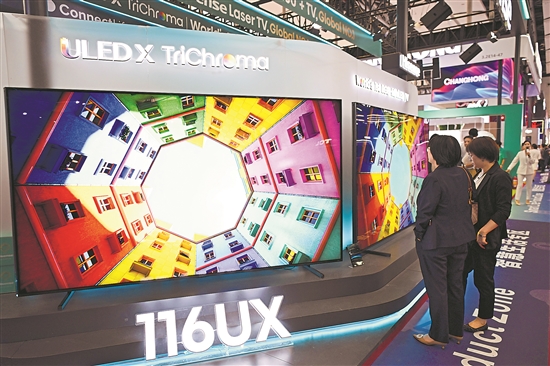 4月16日,在第137屆廣交會的智慧生活專區(qū),觀眾觀看大尺寸電視產(chǎn)品。