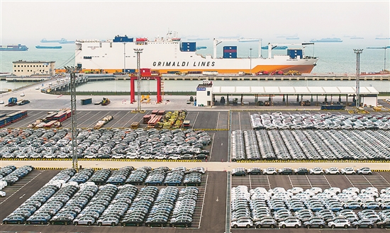 4月19日,江蘇省蘇州港太倉港區(qū)海通汽車碼頭,一批車輛及工程機械正裝載到“阿比盛世”貨輪上。20日,該輪駛向南非德班港,標(biāo)志著長江流域首條至非洲滾集一體班輪航線開通。