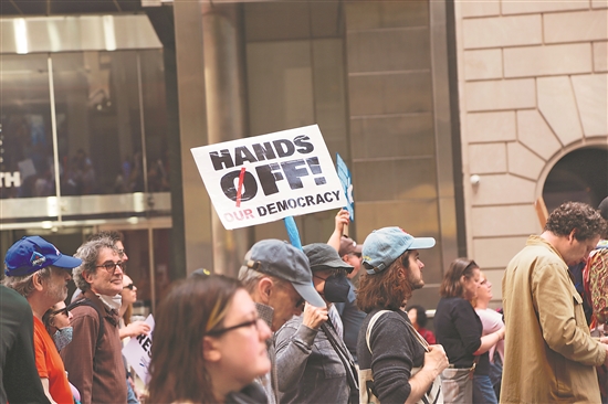 美國多地當(dāng)?shù)貢r間4月19日舉行抗議活動,首都華盛頓、紐約、舊金山、波士頓等城市的民眾走上街頭,抗議現(xiàn)政府大規(guī)模裁員、加征關(guān)稅、驅(qū)逐移民等政策。