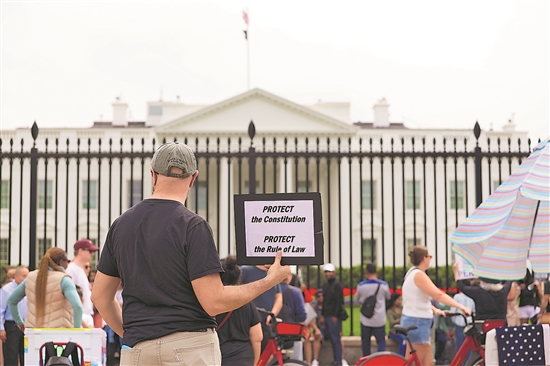 當(dāng)日,人們在美國首都華盛頓白宮門前參加抗議活動。新華社記者 胡友松 攝