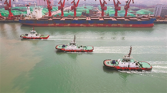 4月17日,純電拖輪“云港電拖三號”下水,其與“云港電拖一號”“云港電拖二號”共同組建為我國首支純電拖輪船隊。據(jù)國網(wǎng)連云港供電公司有關(guān)人士介紹,該船隊年綜合運營成本較同馬力傳統(tǒng)燃油拖輪節(jié)省近900萬元,等效減排二氧化碳近2700噸。本報記者 黃洪濤 本報通訊員 陳阿奇 攝