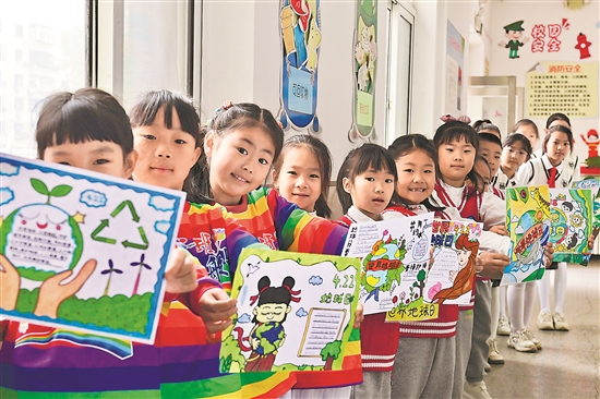 4月22日,沈陽市鐵西區(qū)保工二校學(xué)生展示自己制作的世界地球日主題手抄報(bào)。當(dāng)日是世界地球日,各地開展形式多樣的主題活動(dòng)。新華社記者 吳青昊 攝