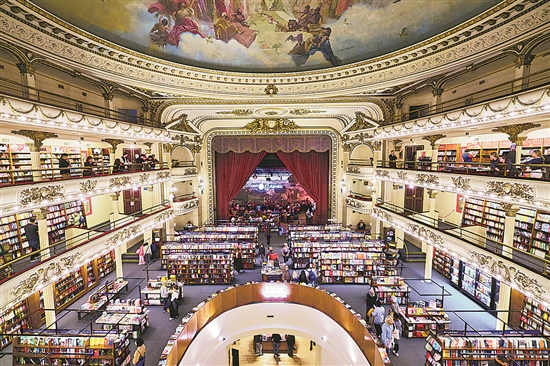 在阿根廷首都布宜諾斯艾利斯市中心的圣菲大道,有一座用建筑和文字凝結(jié)百年時(shí)光的雅典人書(shū)店。1919年,雅典人書(shū)店的前身“大光明劇院”正式落成。20世紀(jì)六七十年代,阿根廷遭遇經(jīng)濟(jì)危機(jī),加之電影和電視的普及,大光明劇院失去了往日榮光,漸漸走向衰落。