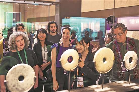 4月23日,參加第三屆聯(lián)合國教科文組織國際博物館高級(jí)別論壇的嘉賓在參觀良渚博物院。