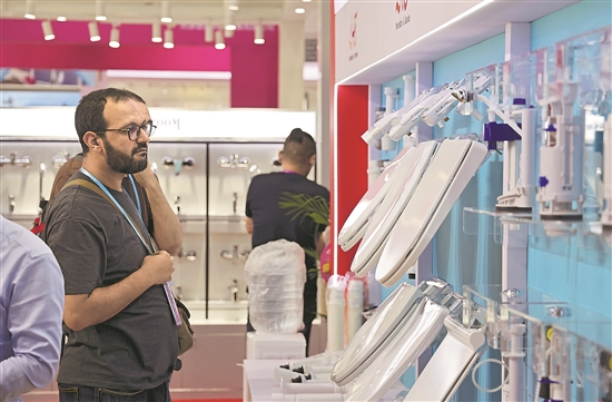 客商在廣交會(huì)上參觀選購(gòu)衛(wèi)浴產(chǎn)品(4月23日攝)。