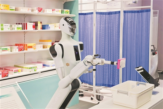 圖為在北京“機器人大世界”的應用場景示范區(qū),銀河通用機器人進行藥店無人值守場景演示。新華社記者 鞠煥宗 攝