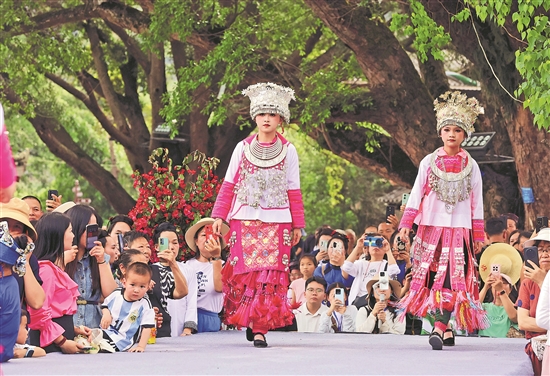 近日,在貴州省黔東南苗族侗族自治州榕江縣忠誠鎮(zhèn)樂鄉(xiāng)村,村民身著民族盛裝參加“村T”走秀,通過秀盛裝、唱侗歌等活動吸引了眾多游客前來感受獨(dú)特的民族風(fēng)情。