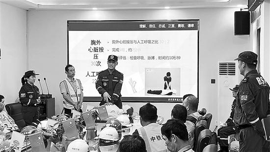 近日,中鐵城建集團(tuán)樂余扶?;ㄔ匪钠陧?xiàng)目聯(lián)合藍(lán)天救援隊(duì),向一線作業(yè)人員開展應(yīng)急管理培訓(xùn)。培訓(xùn)活動(dòng)結(jié)合真實(shí)案例,教授海姆立克急救法、外傷包扎、心肺復(fù)蘇等關(guān)鍵急救技能。在實(shí)操環(huán)節(jié),作業(yè)人員從“旁觀者”變身“急救員”,在講師團(tuán)隊(duì)的指導(dǎo)下練習(xí)急救操作,掌握急救技能。