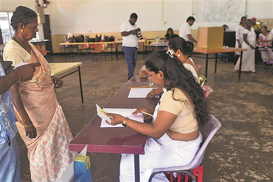 斯里蘭卡選舉委員會當(dāng)?shù)貢r間5月7日發(fā)布全國地方選舉統(tǒng)計結(jié)果,在全國339個地方行政機構(gòu)中,由總統(tǒng)迪薩納亞克領(lǐng)導(dǎo)的國家人民力量黨在其中的266個機構(gòu)中獲得多數(shù)席位。此次選舉是斯里蘭卡時隔7年再次舉行全國地方選舉,被視為對總統(tǒng)迪薩納亞克領(lǐng)導(dǎo)的國家人民力量黨執(zhí)政成績和支持率的一次關(guān)鍵考驗。圖為近日,斯里蘭卡民眾在科倫坡的一處投票站投票。 新華社發(fā)(加揚·薩米拉 攝)