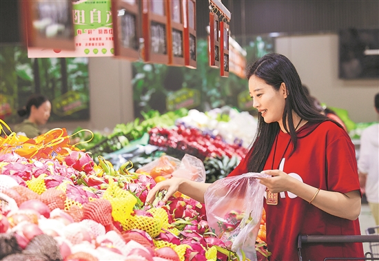 5月10日,消費(fèi)者在山東省濱州市陽(yáng)信縣一家超市選購(gòu)水果。國(guó)家統(tǒng)計(jì)局5月10日發(fā)布數(shù)據(jù)顯示,4月份,全國(guó)居民消費(fèi)價(jià)格指數(shù)(CPI)同比下降0.1%;扣除食品和能源價(jià)格的核心CPI上漲0.5%,漲幅保持穩(wěn)定。