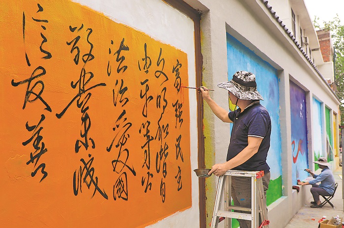 手繪文化墻 宣揚新風(fēng)尚