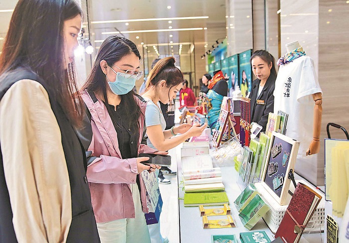 5月10日,參觀者在河北省秦皇島博物館參觀文創(chuàng)產(chǎn)品。