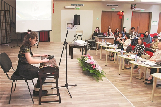 近日,在保加利亞首都索非亞,選手在第18屆“漢語橋”世界中學(xué)生中文比賽保加利亞賽區(qū)決賽上表演。新華社發(fā)(馬里安·德拉加諾夫 攝)