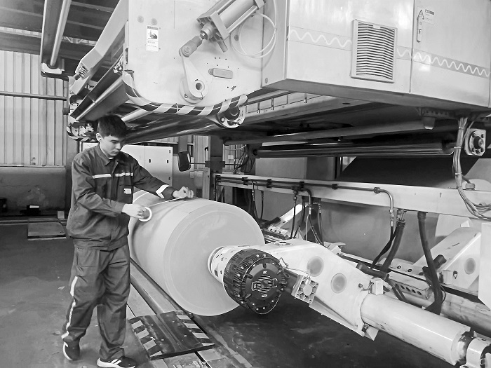 圖為5月14日,該公司操作工李彬彬正將經(jīng)過綠色低碳技術(shù)處理過的紙筒放入原紙架,再將紙筒引入接紙機中。本報記者 甘皙 攝