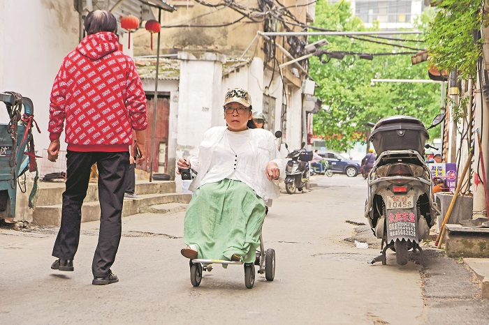 李傳琴坐著輪椅前往助殘就業(yè)中心上班。