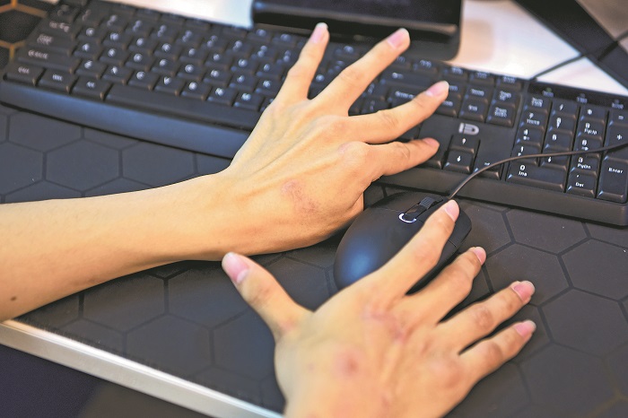 在這個(gè)簡(jiǎn)陋的辦公區(qū)內(nèi),殘疾人朋友們不分彼此,行動(dòng)不便能相互照應(yīng),業(yè)務(wù)不熟悉能相互請(qǐng)教?!爸灰敢鈦恚慊A(chǔ)‘小白’我們也能教?!崩顐髑俳榻B,殘疾人有就業(yè)意向,他們就會(huì)提供一對(duì)一、手把手的就業(yè)指導(dǎo)、上崗培訓(xùn)。