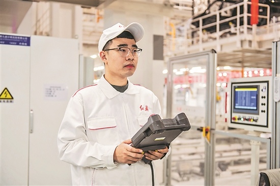 “在傳統(tǒng)車間,完成這樣的生產(chǎn)規(guī)模需要三四百人,現(xiàn)在100多名工人就能完成所有工作,維修工段也從38人縮減到了18人。”趙達(dá)告訴記者,智能車間的維修工人不再單純?yōu)樵O(shè)備“把脈問診”,而是要為設(shè)備持續(xù)賦能,讓智能生產(chǎn)線實(shí)現(xiàn)柔性生產(chǎn)。