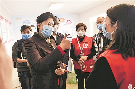 云南省人大常委會(huì)副主任、省總工會(huì)主席王樹芬(左二)2021年到昆明惠工社會(huì)服務(wù)中心調(diào)研工會(huì)社工人才隊(duì)伍建設(shè)情況。