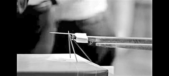 叉車緩緩前行,駕駛員楊海濤緊握操縱桿,即將挑戰(zhàn)一項高難度任務(wù)——用叉齒前端綁著的鋼針,穿過豎立在前方工作臺上的另三根鋼針的針孔,針孔直徑分別為5毫米、3毫米、2毫米。楊海濤屏住呼吸,調(diào)整好叉齒高度,輕推操縱桿,將鋼針穩(wěn)穩(wěn)推進前方的針孔中,接二連三成功挑起前方鋼針,整個過程絲滑流暢。